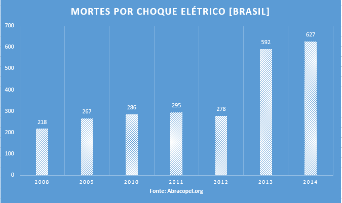 Seguindo a linha de postagens, fiz uma breve pesquisa sobre a quantidade de mortes registradas, desde 2008 pela Abracopel ( Associação Brasileira de Conscientização para os Perigos da Eletricidade ), os quais montaram o gráfico a seguir.
